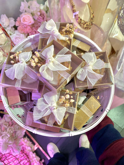 علبة زهور بلكسي مخصصة باللوز المحلى | هدايا الضيوف | زفاف | ارتباط