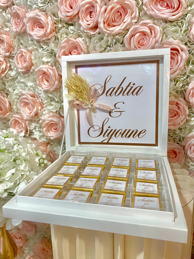 Boîte Gold de 24 chocolats au lait personnalisés | cadeaux invités | cérémonies