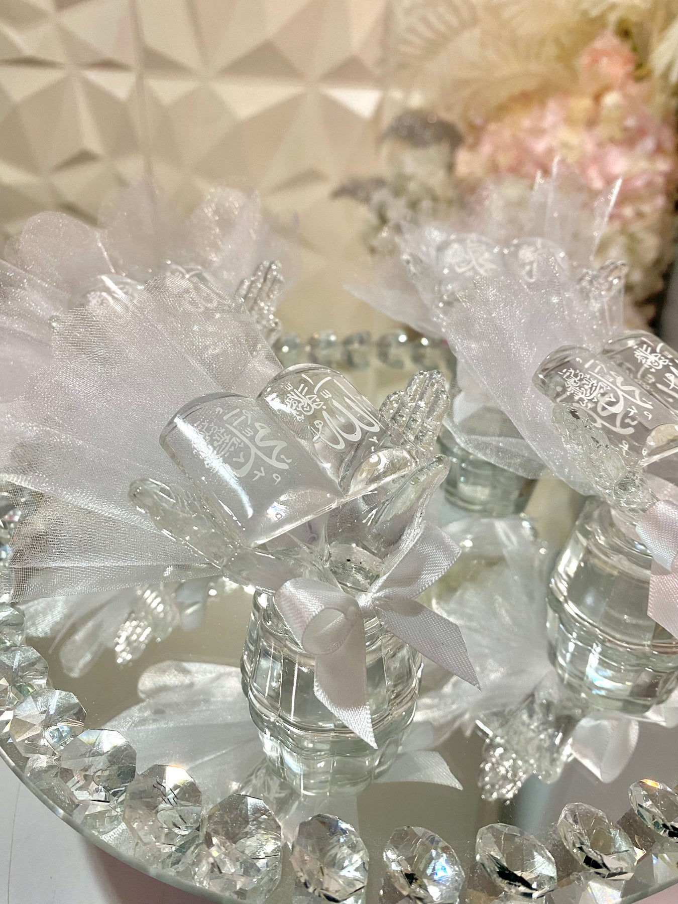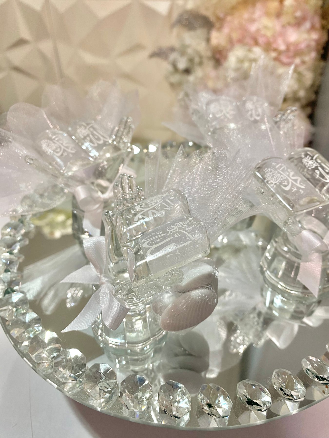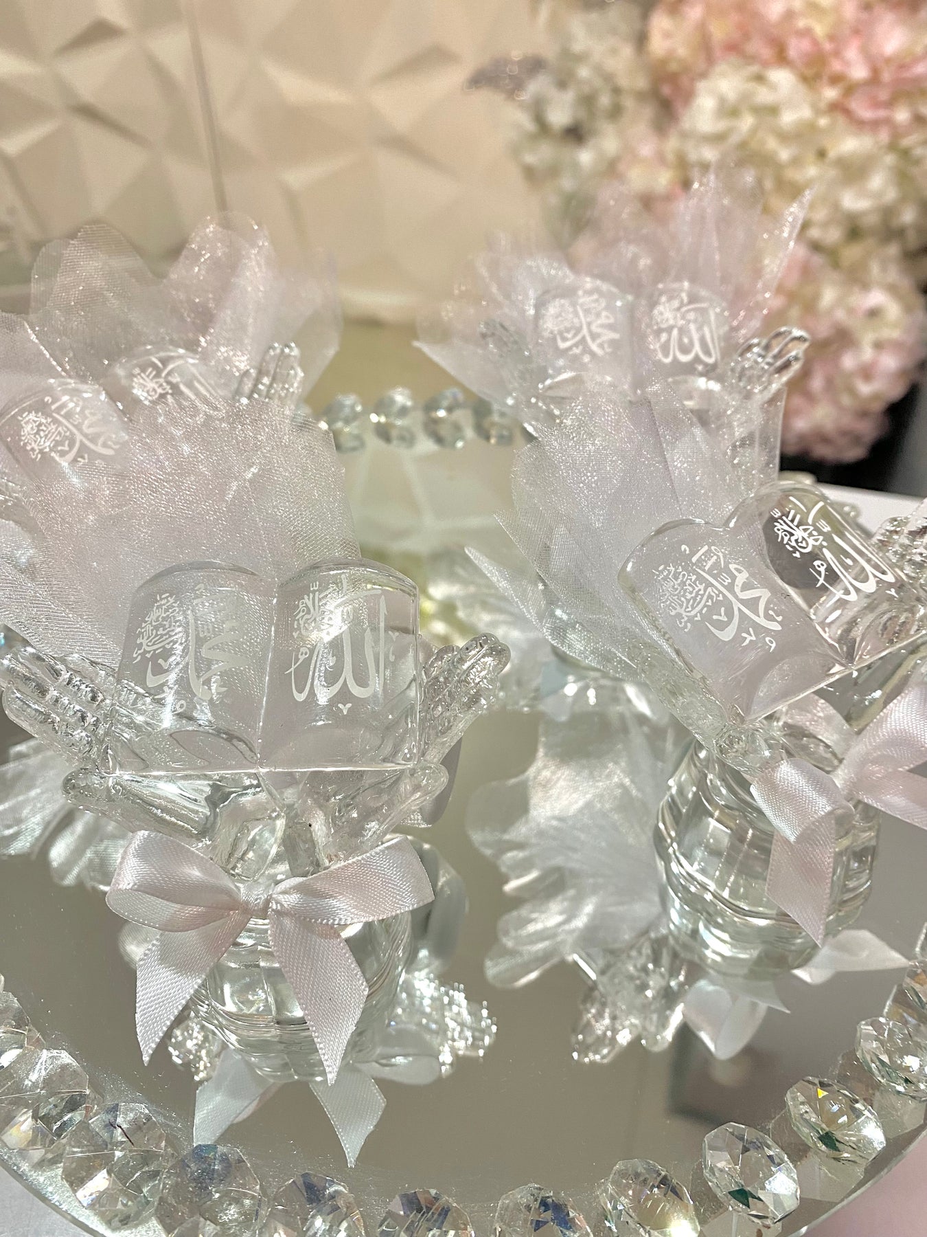 Livre en verre avec sa tulle garnie de dragées chocolats